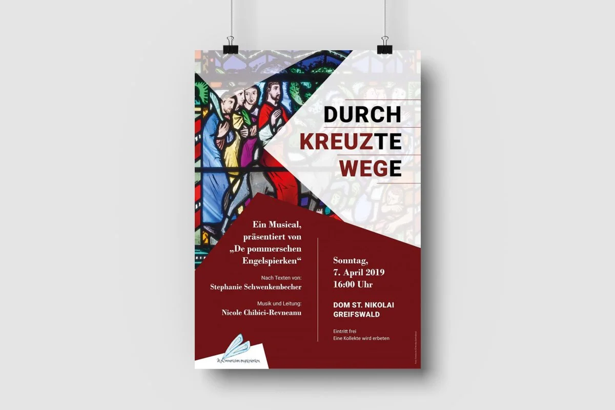 Das Konzept des Stückes „Durchkreuzte Wege“ wurde von einer Gruppe Ehrenamtlicher aus der Musicalgruppe erarbeitet; wie bei allen bisherigen Stücken hat die Greifswalder Theologin Stephanie Schwenkenbecher die Texte geschrieben, Pastorin Nicole Chibici-Revneanu die Musik.
